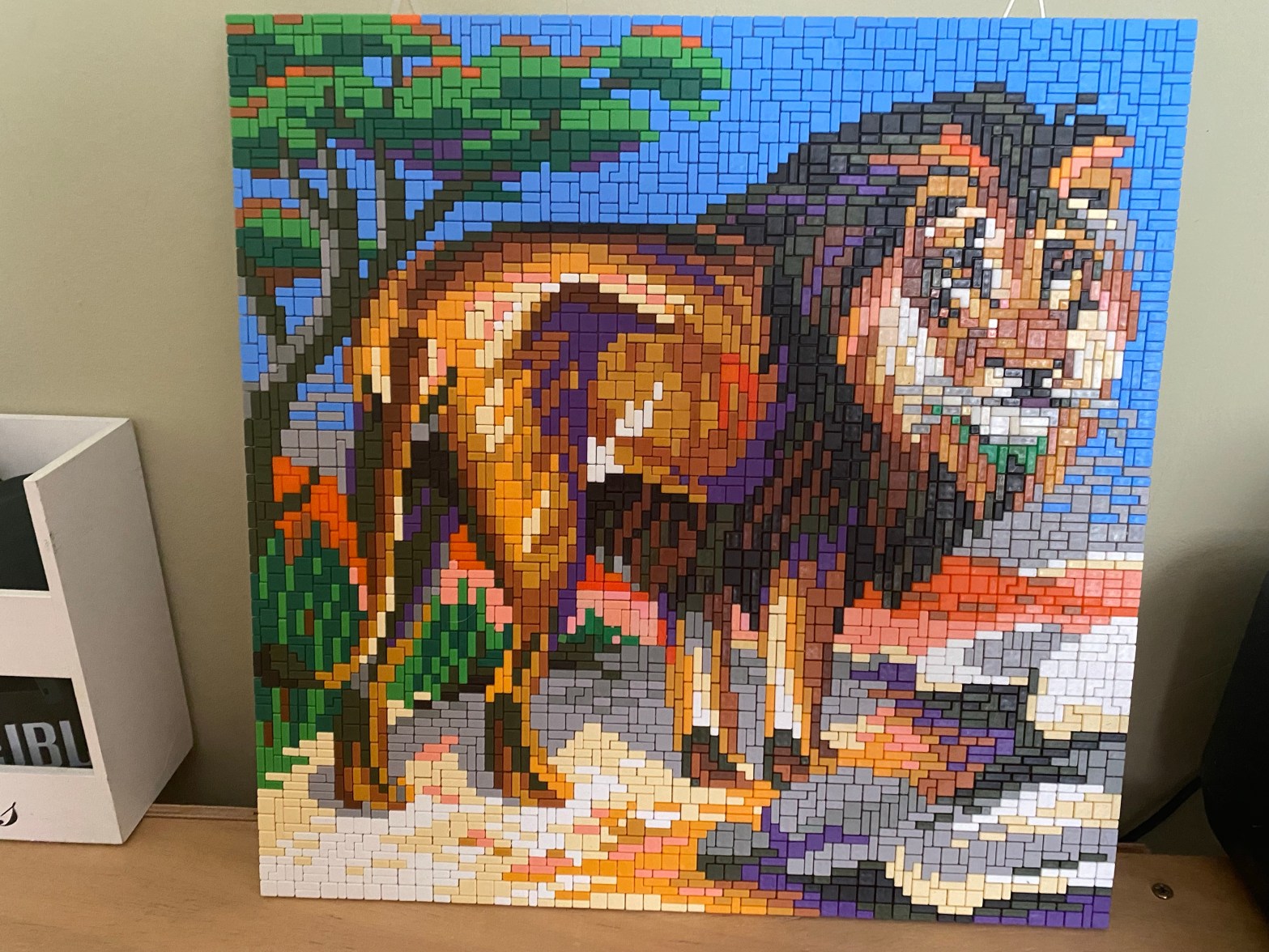 After breakfast I went to my desk to finish the lion I had been making with Ministack. I made sure to regularly move from the sitting position to get tea, or potty. So that I didn’t cuse myself pain by sitting too long. At one point a package was delivered, so I went to the door to get that. I finished the lion just in time for lunch. Pheww. That was a huge challenge. Never made a Ministeck puzzle that big before. It was fun.