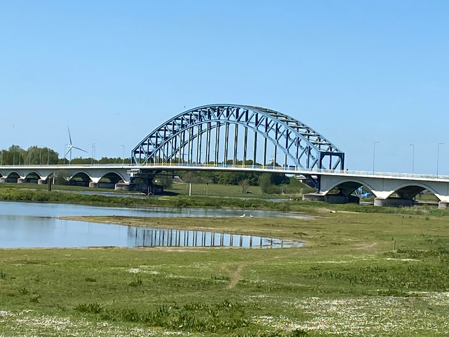 We took the train to Zwolle, checked out and stopped at the supermarket to get some lunch and drinks. Croissants, they’re easy to take with us. Then we headed to Het Engelse Werk park. It was a nice Sunny day. Great weather for a walk. We needed to go down a hill and under a bridge to get to the park. That was interesting as the pavement wasn’t smooth. Free butt massage anyone?
