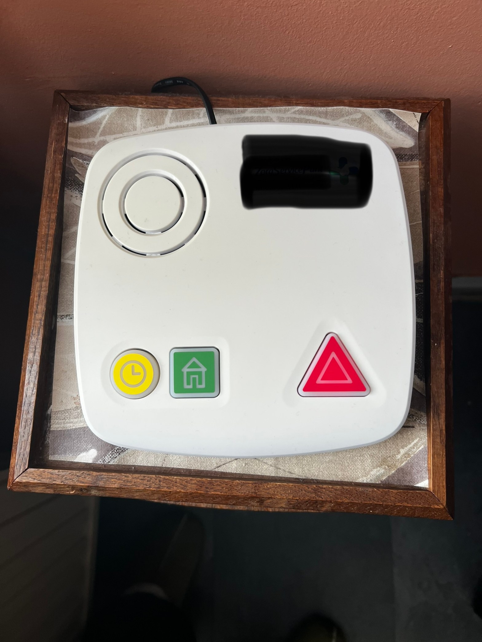 “CALLING!” the device yelled through my living room. In fact, I think even the neighbors could have heard the device screaming. Within 10 seconds I heard the familiar sound of a telephone that you hear in your ear when you call someone. The red lamp of the emergency button on the device itself went out and a yellow lamp came on. A friendly female operator answered the call.